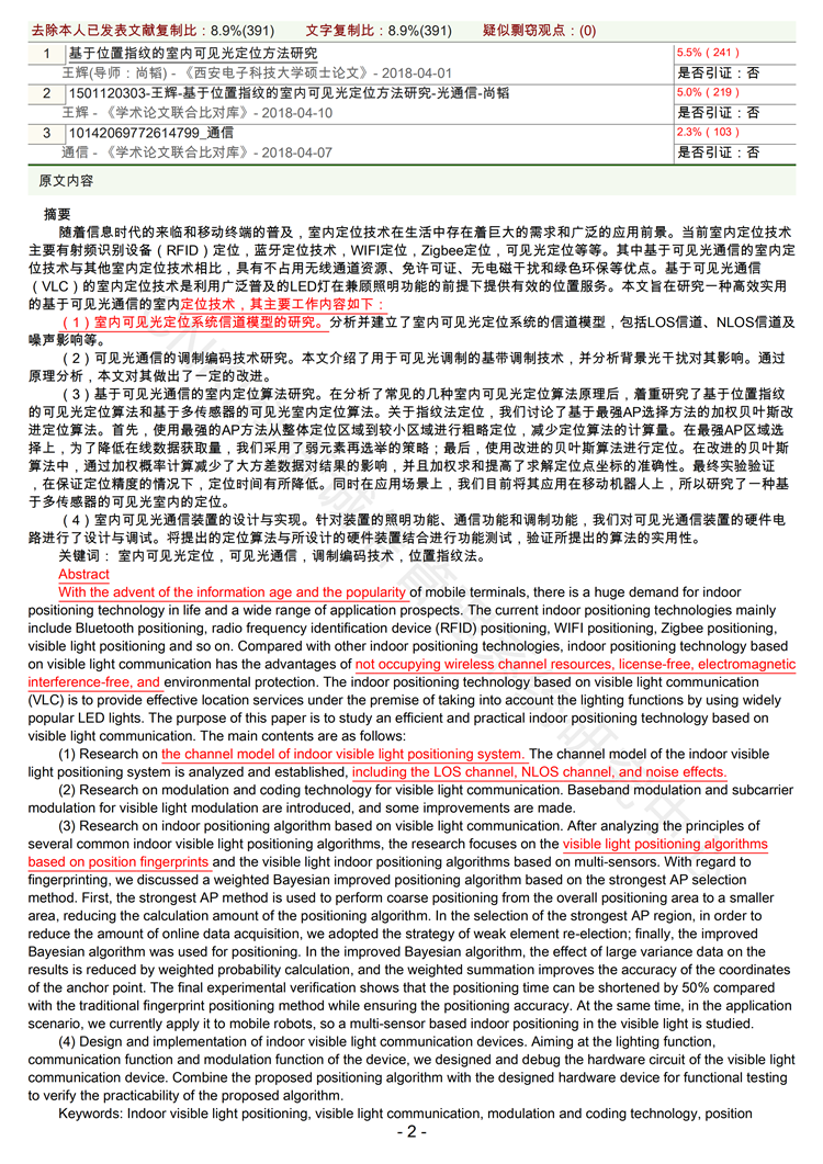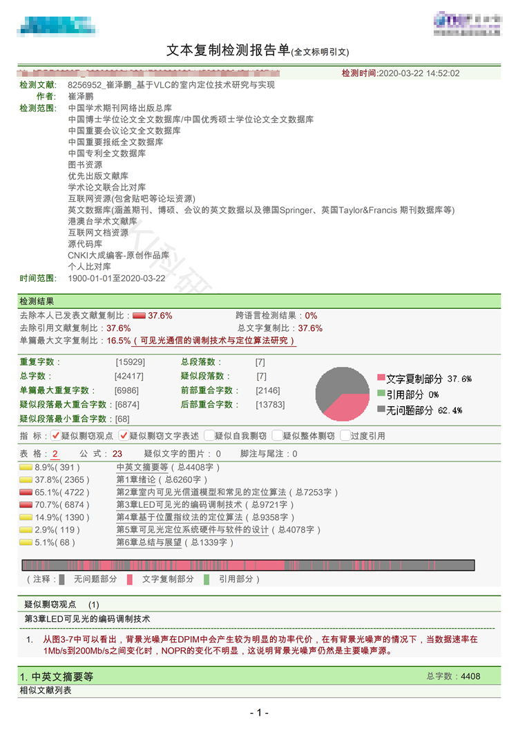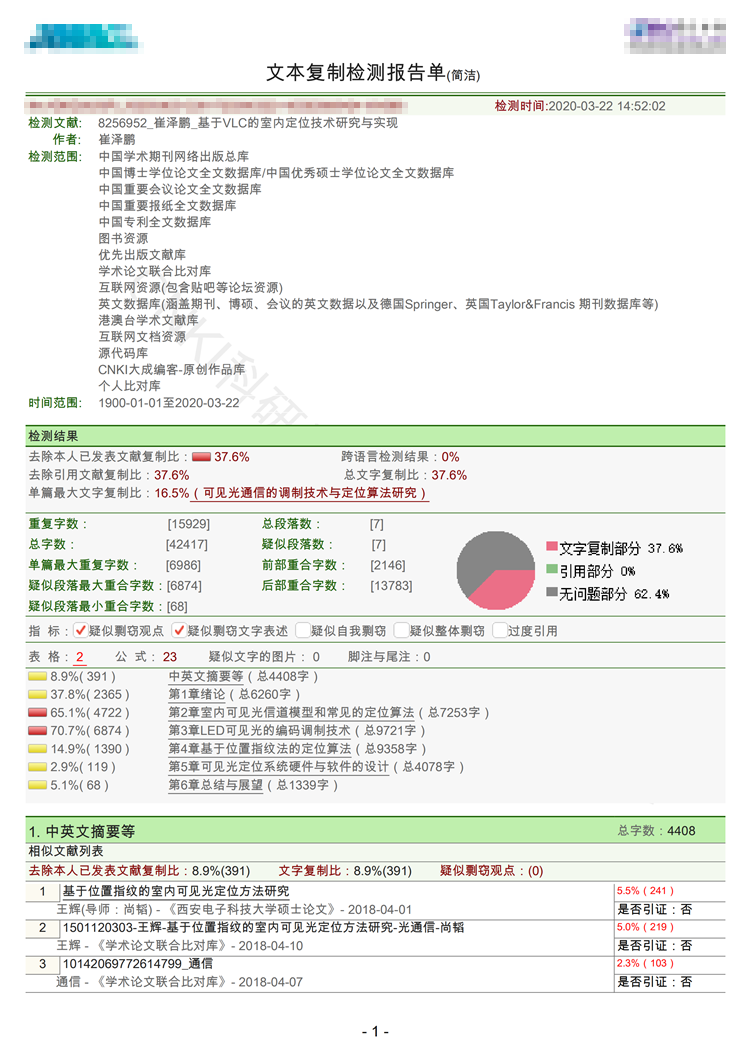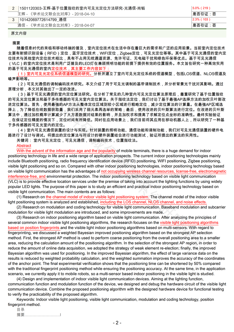 2、全文标红报告:标出全文重复的部分。红色为抄袭,黄色为引用,都被计算入总复制比。