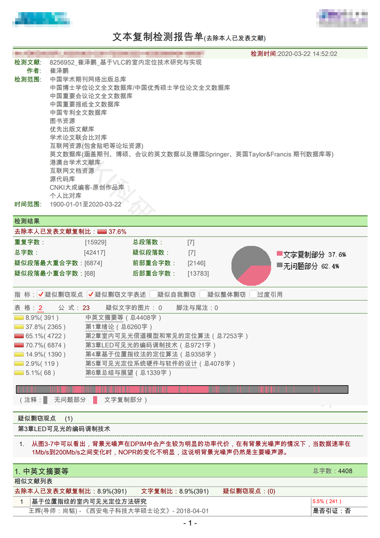 4、去除本人文字复制比: 此报告会去除本人已发表文献的重复部分。